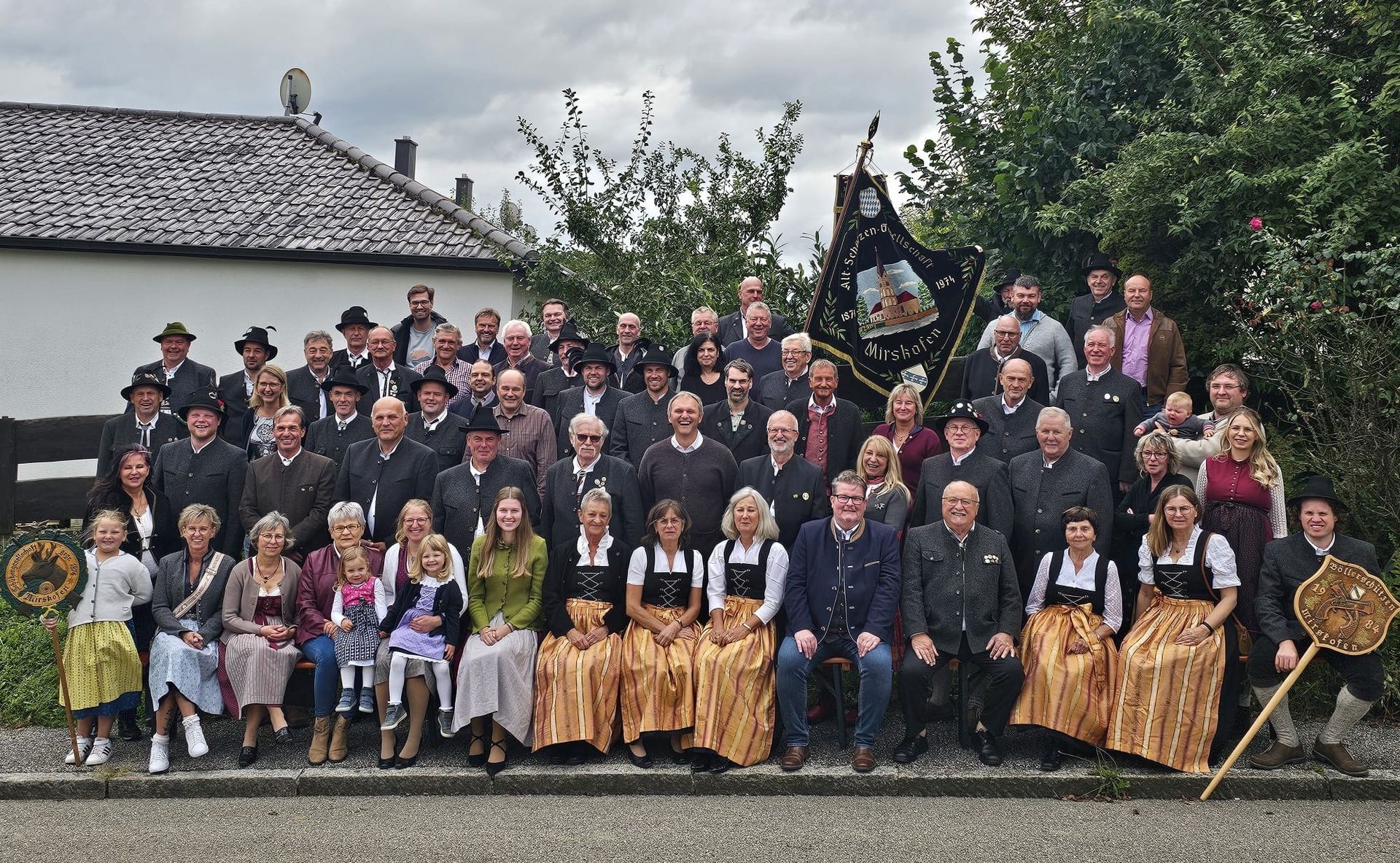 Vorstand Helmut Forstmaier durfte neben den Kirchenvertretern, der Abordnung des Schützengaus Landshut, den Adlerhorstschützen Ergolding, 1. Bürgermeister Dieter Neubauer und den Mirskofener Gemeinderäten auch die Ortsvereine aus Mirskofen und Umgebung begrüßen.